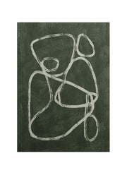 Koyu, dokulu zemin üzerinde ilerleyen beyaz çizgiler; tekil bir formdan çok, bir ilişkiyi çağrıştırır. Hatlar kimi yerde iç içe geçer, kimi yerde yön değiştirerek birbirinden uzaklaşır. Bu geçişler, kompozisyonun merkezinde doğal ama hesaplanmamış bir denge yaratır.