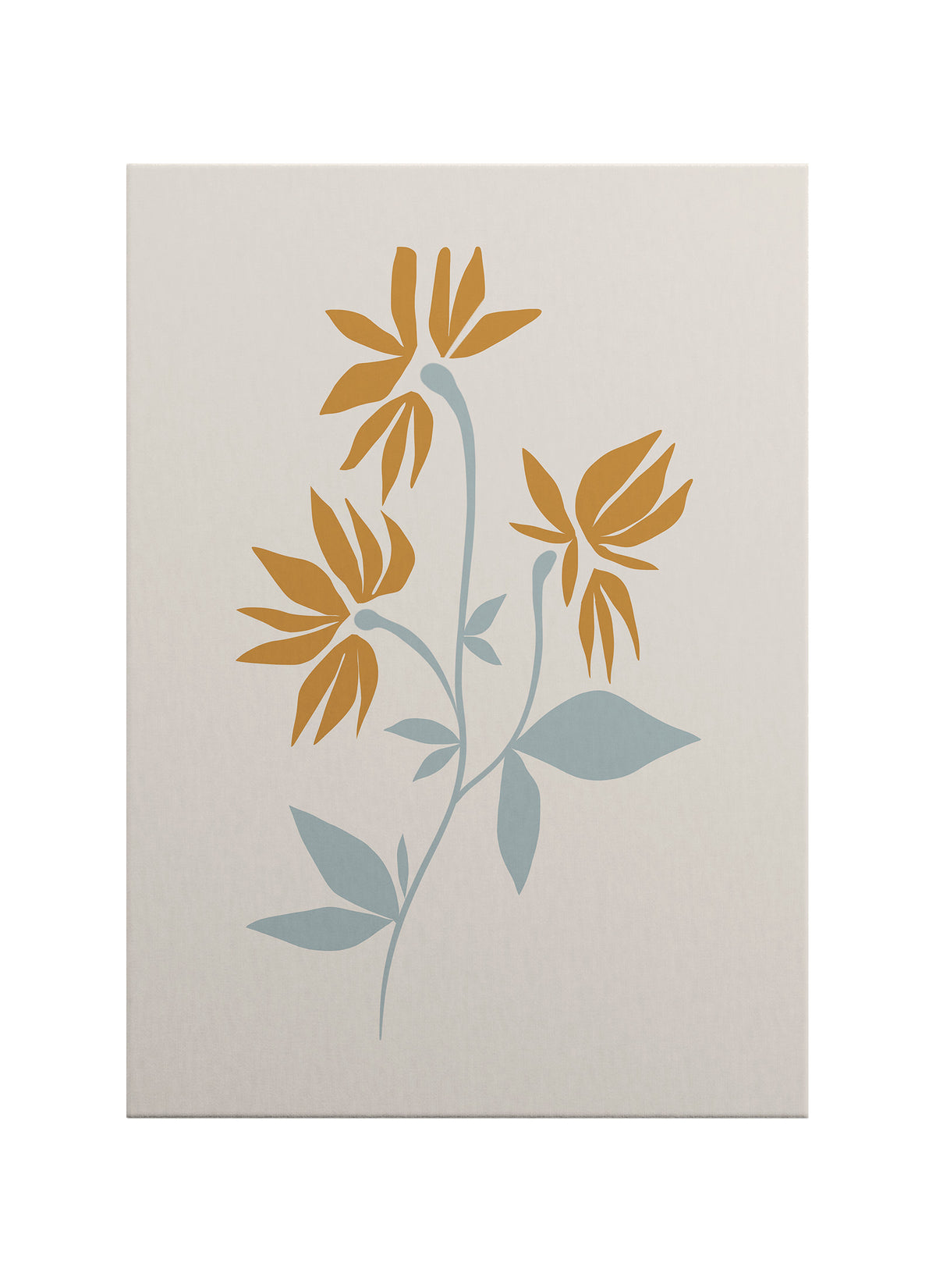 Hardal Çiçekler minimal botanik kanvas tablo, yumuşak mavi-yeşil gövde çizgileriyle sıcak hardal tonlarını bir araya getirerek mekâna dengeli ve huzurlu bir atmosfer kazandırır. İnce formda stilize edilmiş çiçek yapısı, modern estetikle doğallığı bir arada sunar.