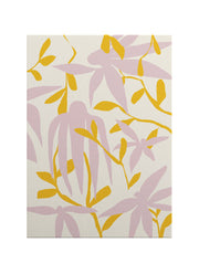 Pastel pembe bitki formları ve sıcak hardal sarısı yaprak detaylarıyla tasarlanan bu eser, yaşam alanlarına sakinlik ve estetik bir bütünlük kazandırır. Dikey kompozisyonu sayesinde mekânda zarif bir akış hissi yaratır ve duvarda doğal bir odak noktası oluşturur.