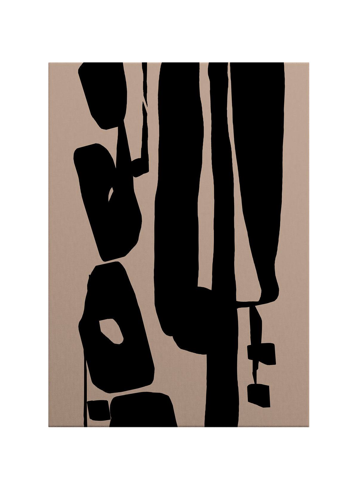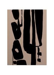 Bu soyut kanvas tablo, siyahın güçlü ifadesini organik formlarla birleştirerek mekânda derinlik ve karakter yaratır. Yumuşak bej zemin üzerinde yükselen siyah blok formlar, izleyiciye hem dinginlik hem de görsel bir gerilim hissi sunar.
